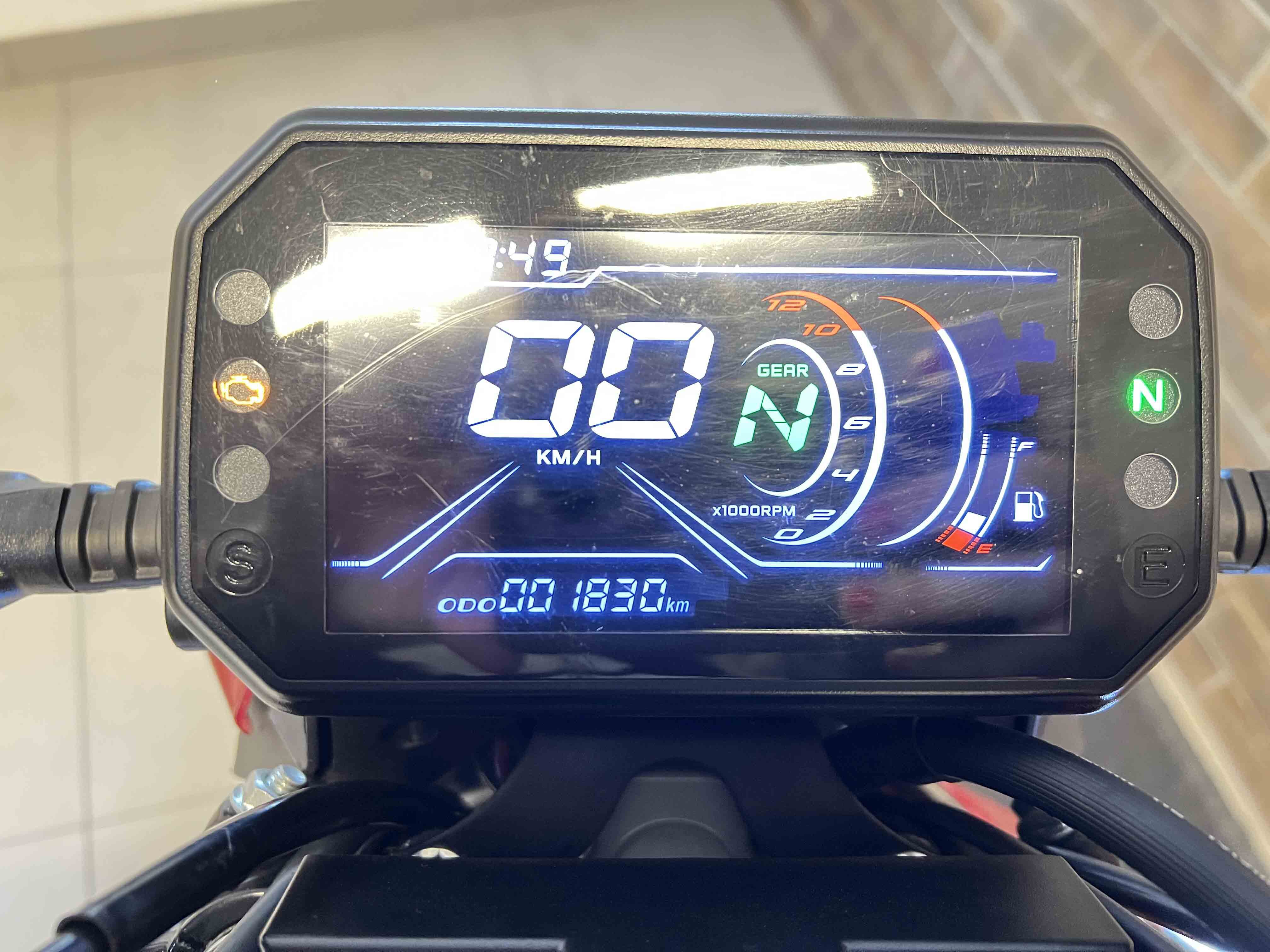 Painel 100% digital com velocímetro, conta?giros, indicador de marcha, neutro e nível de combustível