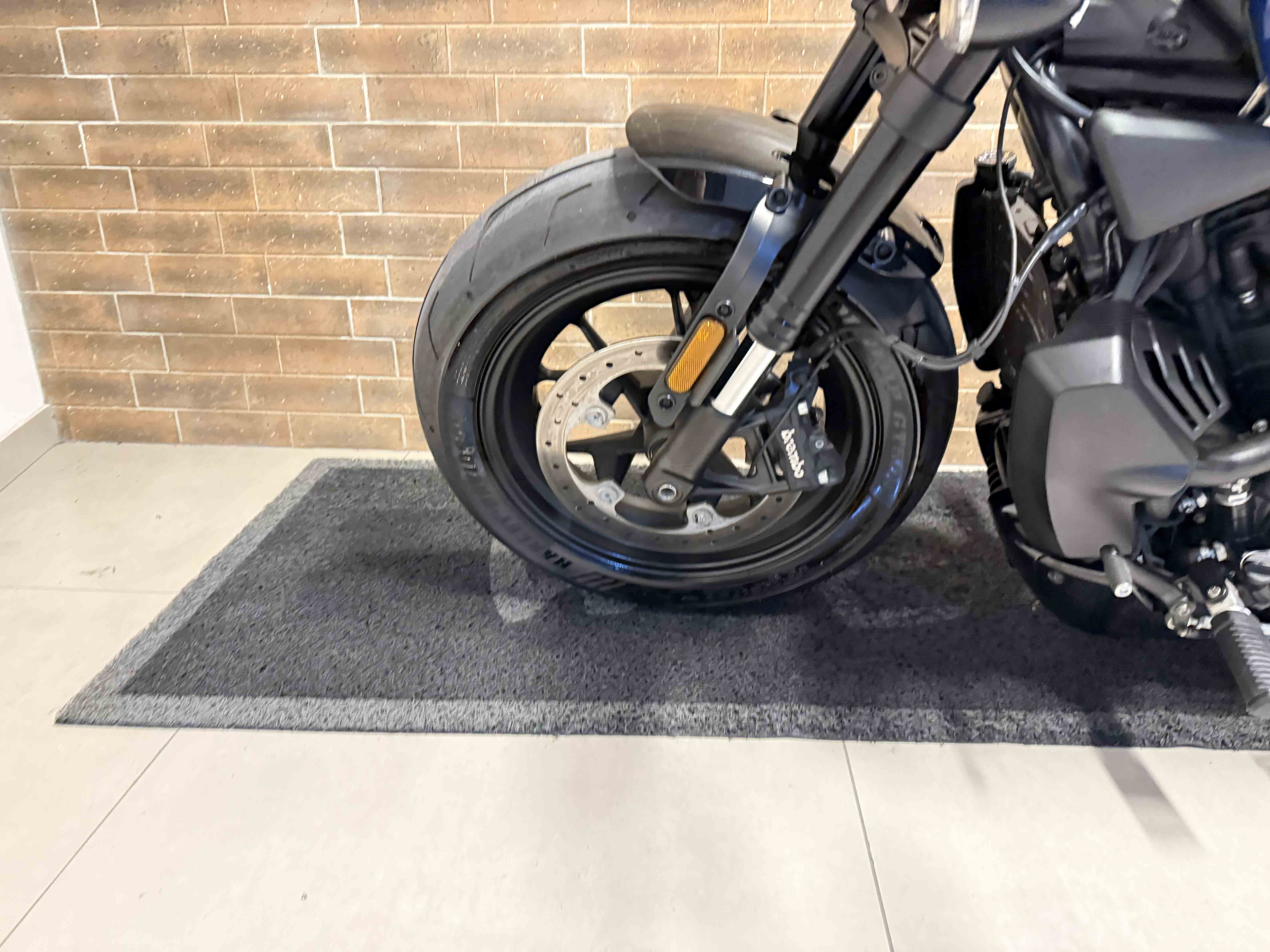 - Freio dianteiro a disco com pinça de quatro pistões;